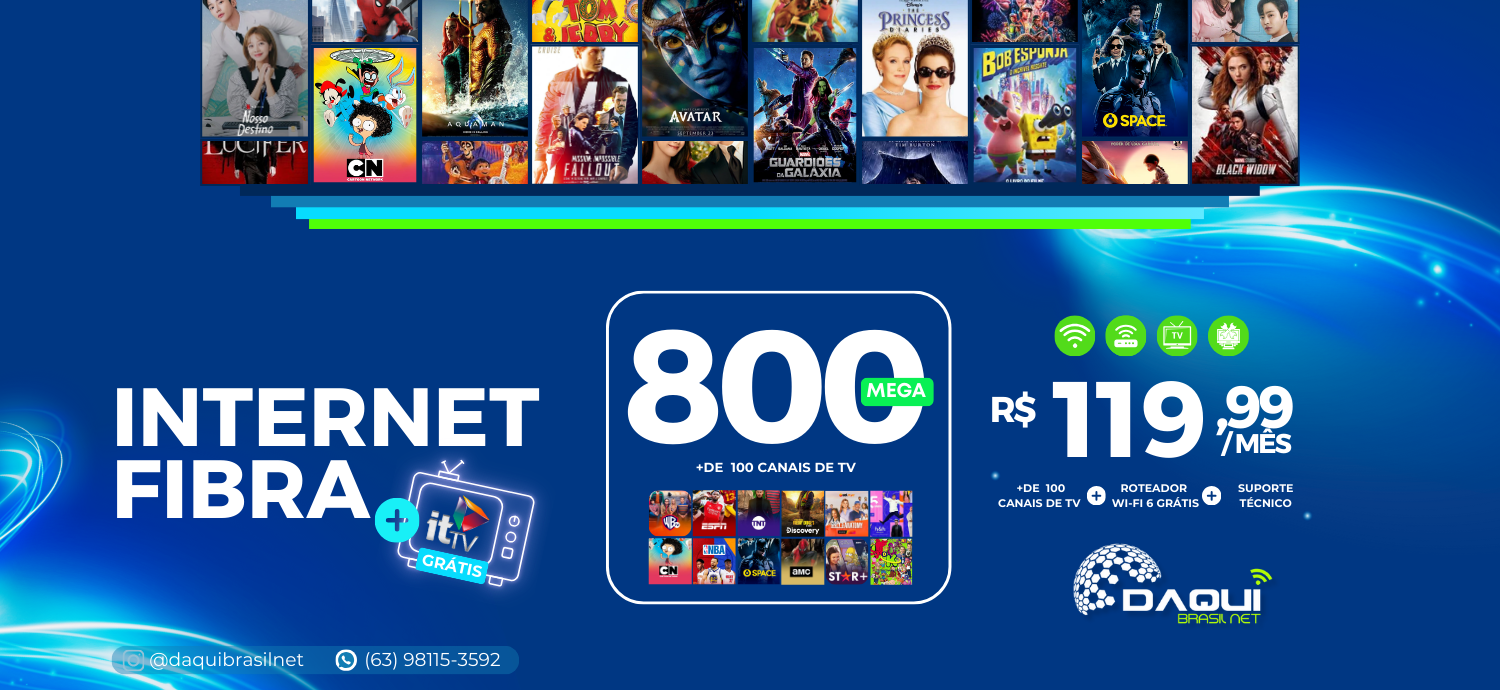 A DaquiBrasil.Net é uma empresa de Telecomunicações, Serviços de Internet e Banda Larga com sede na cidade de São Miguel do Tocantins - TO. Com estrutura para atender toda a região, possui licença própria de SCM (Serviço de Comunicação e Multimídia). Nosso atendimento é exclusivamente em fibra óptica, com uma rede FTTH.
